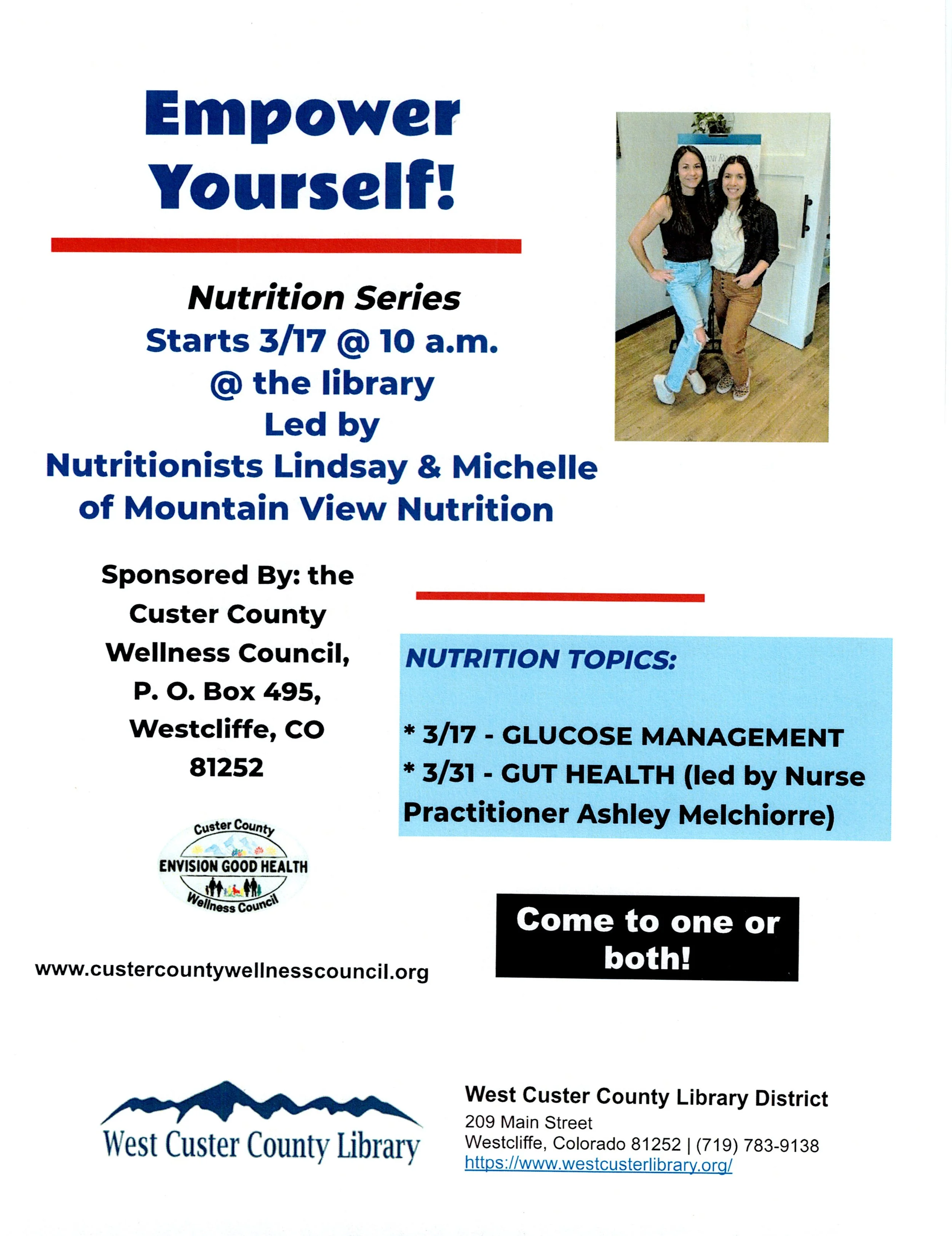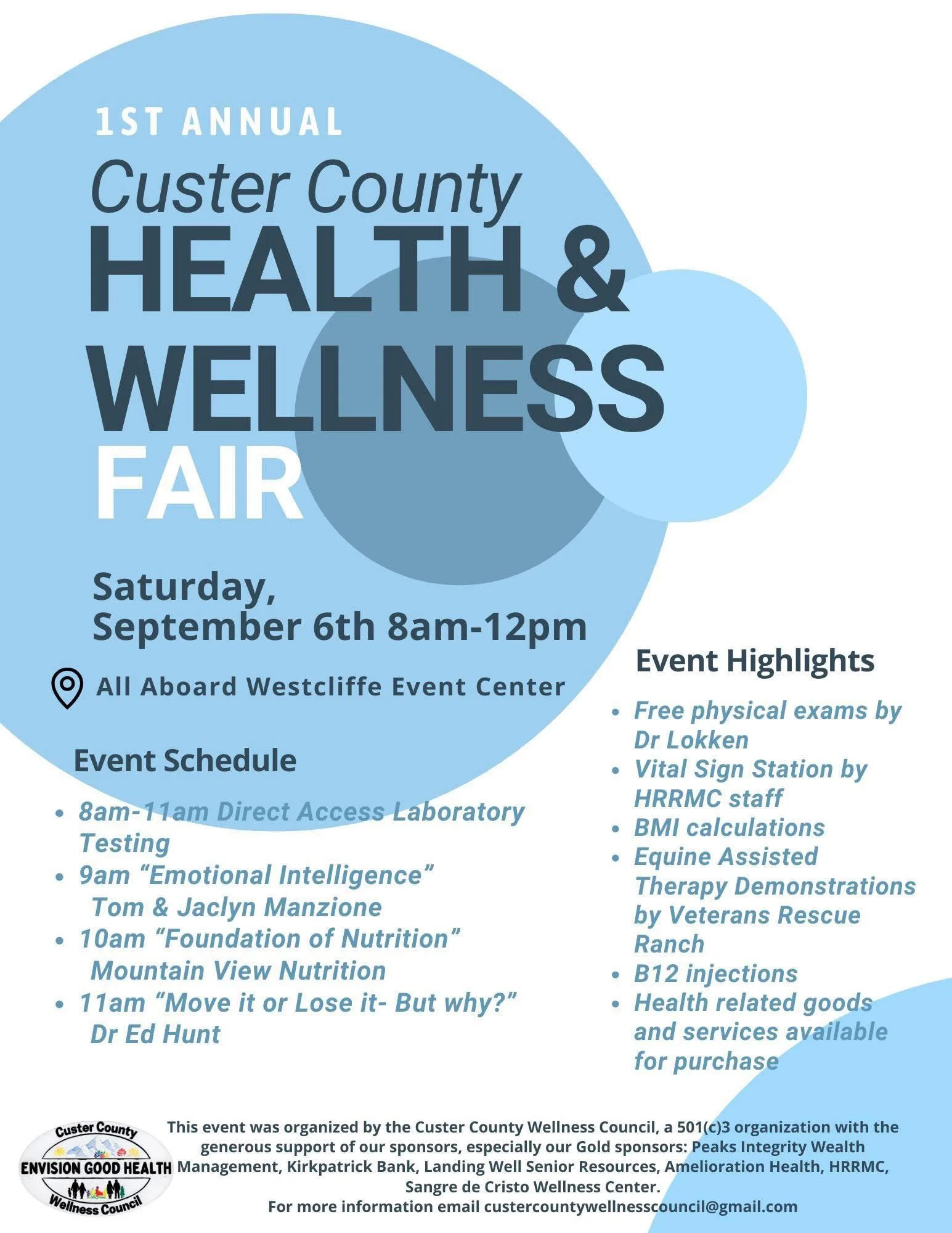 The Custer County Wellness Council is an umbrella organization of wellness oriented professionals and businesses with the Vision of growing the community to be a Wellness Center of the Rockies, to allow for relaxation and restoration of body, mind, and spirit.